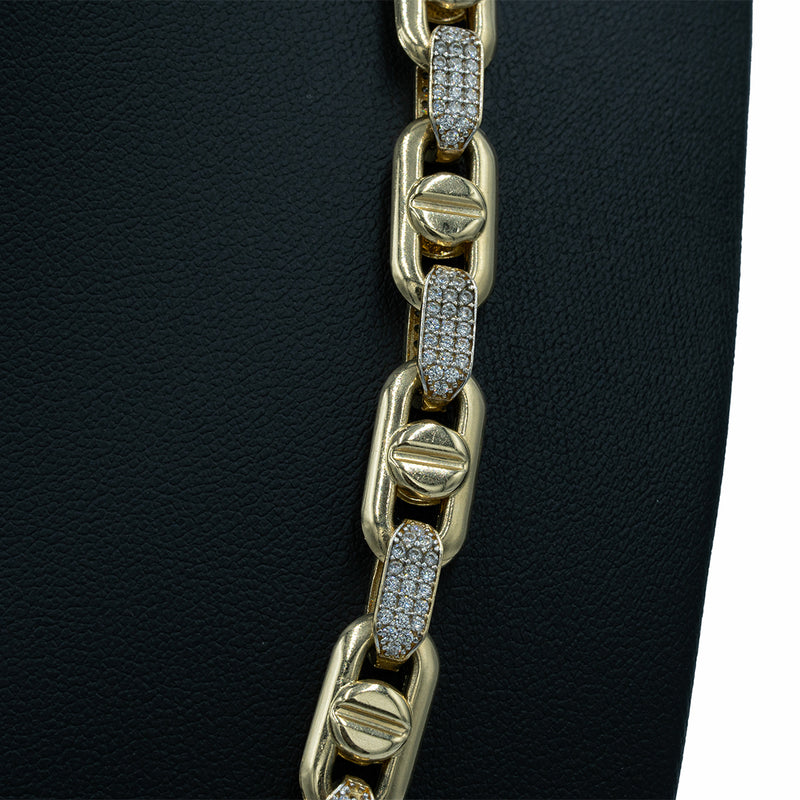 Iced Vintage Screw Necklace 14k YG CZ 8mm 21”
